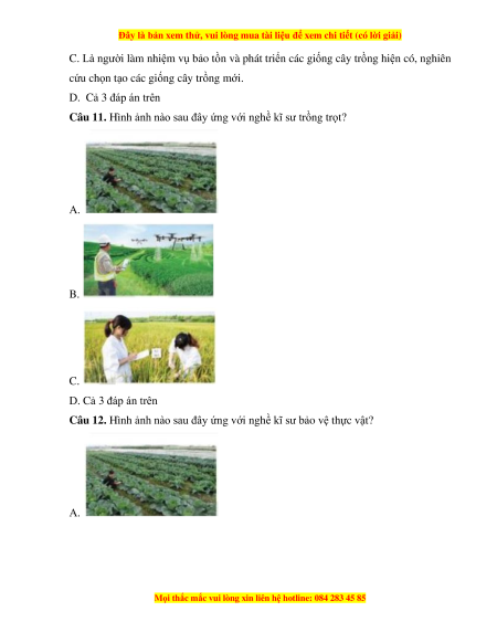 Câu 11. Hình ảnh nào sau đây ứng với nghề kĩ sư trồng trọt? A. B. C. D. Cả 3 đáp án trên