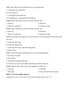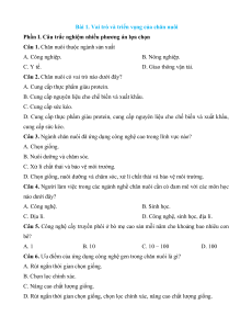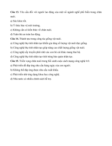 Câu 12. Ngành chăn nuôi sẽ được công nghiệp hóa ở khâu nào? A. Sản xuất. B. Chế biến. C. Bảo quản.