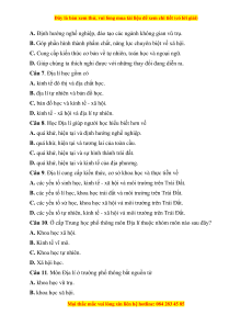 Câu 9. Địa lí cung cấp kiến thức, cơ sở khoa học và thực tiễn về