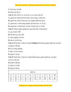 Câu 13. Nhóm nghề nghiệp liên quan đến địa lí tổng hợp là A. quy hoạch, GIS.