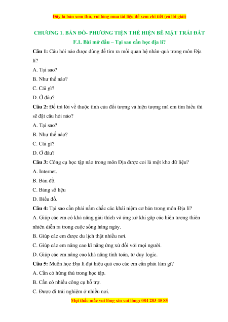 Câu 1: Câu hỏi nào được dùng để tìm ra mối quan hệ nhân-quả trong môn Địa lí? A. Tại sao? B. Như thế nào? C. Cái gì? D. Ở đâu?