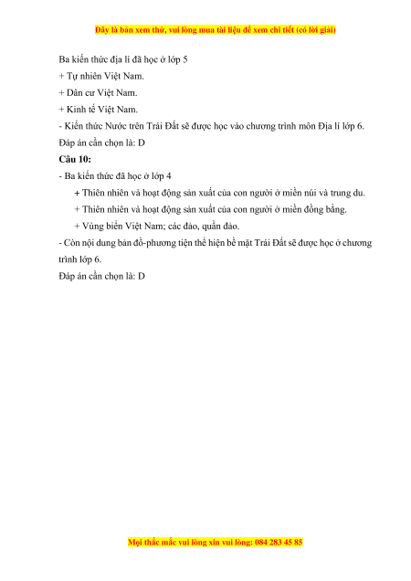Câu 10: Ở Tiểu học, em đã bước đầu được làm quen với một số kiến thức địa lí.