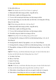 việc nắm chắc các kiến thức và kĩ năng địa lí để ứng dụng vào cuộc sống. Đáp án cần chọn là: D Câu 7: