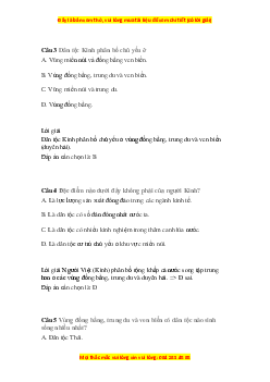 Câu 5 Vùng đồng bằng, trung du và ven biển có dân tộc nào sinh sống nhiều nhất? A. Dân tộc Thái.