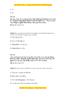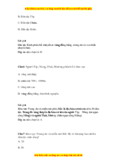 Câu 7 Khu vực Trung du và miền núi Bắc Bộ có khoảng bao nhiêu dân tộc sinh sống? A. 35. B. 30.