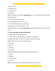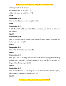 Câu 5. Môi trường nào có lượng mưa lớn nhất châu Âu? A. Ôn đới lạnh. B. Ôn đới lục địa. C. Ôn đới hải dương. D. Địa Trung Hải.