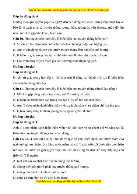Câu 10. Phương án nào dưới đây là biểu hiện của truyền thống hiếu học?