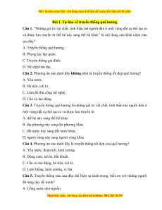 Câu 2. Phương án nào dưới đây không phải là truyền thống tốt đẹp quê hương? A. Yêu nước. B. Hà tiện, ích kỉ.
