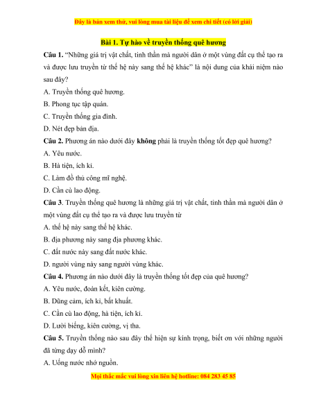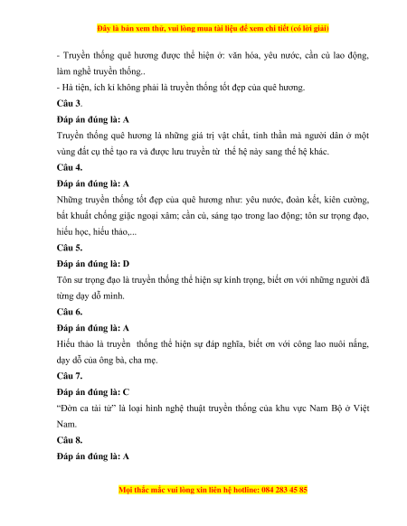 Câu 3. Truyền thống quê hương là những giá trị vật chất, tinh thần mà người dân ở