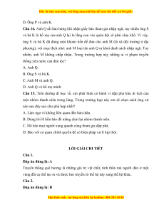 Câu 15. Trên đường đi học về, em phát hiện có hành vi đập phá khu di tích của