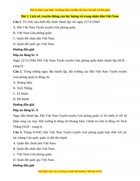 Bài 1. Lịch sử, truyền thống của lực lượng vũ trang nhân dân Việt Nam