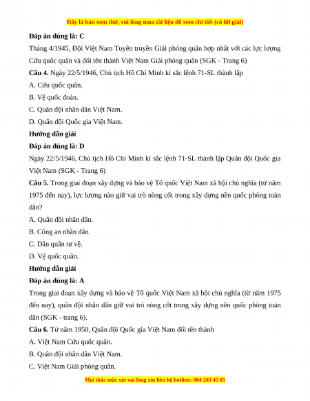Câu 4. Ngày 22/5/1946, Chủ tịch Hồ Chí Minh kí sắc lệnh 71-SL thành lập A. Cứu quốc quân. B. Vệ quốc đoàn.