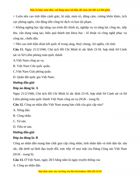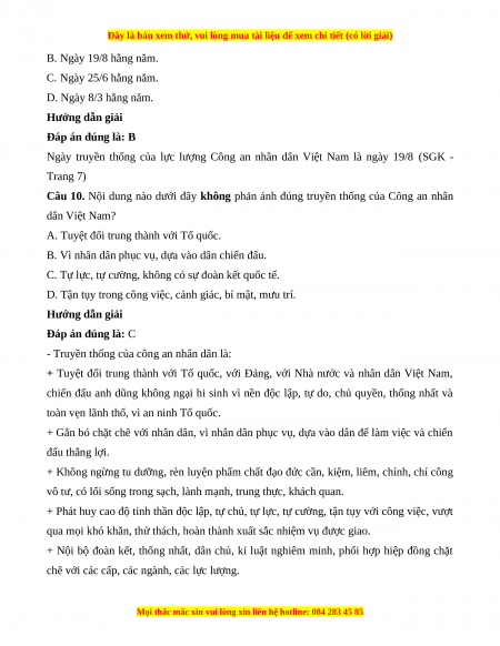 Câu 9. Ngày truyền thống của lực lượng Công an nhân dân Việt Nam là ngày nào? A. Ngày 22/12 hằng năm.