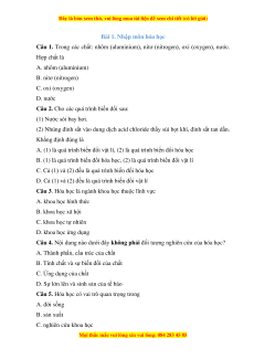 Câu 3. Hóa học là ngành khoa học thuộc lĩnh vực A. khoa học hình thức B. khoa học xã hội