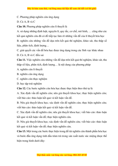Câu 13. Một trong các bước thực hiện trong đề tài nghiên cứu thành phần hóa học