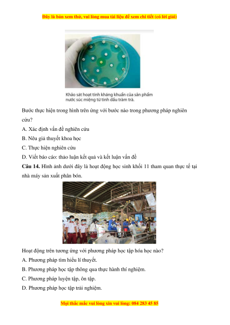 Câu 14. Hình ảnh dưới đây là hoạt động học sinh khối 11 tham quan thực tế tại