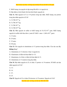 Câu 11. Một nguyên tử X có 19 proton trong hạt nhân. Khối lượng của proton
