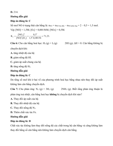 mol NO2. Hằng số cân bằng KC lúc này có giá trị là A. 4,42. B. 40,1. C. 71,2. D. 214. Hướng dẫn giải Đáp án đúng là: C