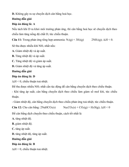 Câu 10: Cho phản ứng sau đây ở trạng thái cân bằng: A(g) + B(g) C(g) + D(g).