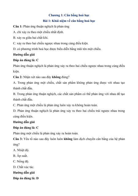 Câu 1: Phản ứng thuận nghịch là phản ứng