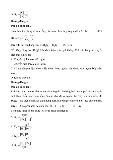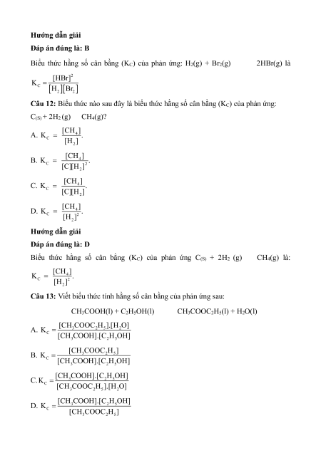 Biểu thức hằng số cân bằng (KC) của phản ứng trên là A. 2[HBr] K . C Br H 2 2 2 B. [HBr] K . C H Br 2 2 H Br 2 2 C. K . C 2 [HBr] H Br 2 2 D. K . C 2[HBr]