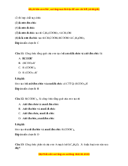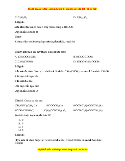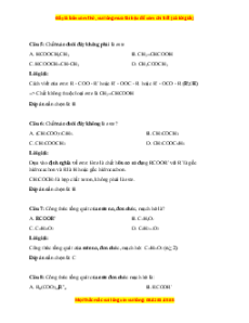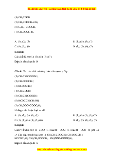 Câu 4: Cho các chất có công thức cấu tạo sau đây: (1) CH3CH2COOCH3; (2) CH3OOCCH3; (3) HCOOC2H5; (4) CH3COOH; (5) CH3CH2COOCH3 (6) HOOCCH2CH2OH; (7) CH3OOC−COOC2H5.