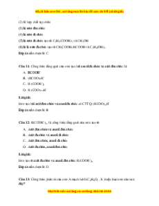 Câu 10: Cho các chât sau: (CH3OOC)2C2H4 (1) HCOOCH3 (3) HOCO-C2H4-OOCCH3 (4) HCOO-COOH (2) C3H5(COOCH3)3 (5) HCOO-C2H4-OOCCH3 (6).