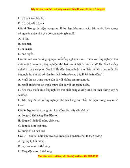 Câu 4. Trong các hiện tượng sau: lũ lụt, hạn hán, mưa acid, bão tuyết; hiện tượng
