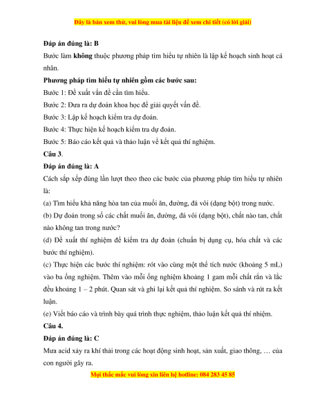 Câu 1. Phương pháp tìm hiểu tự nhiên là
