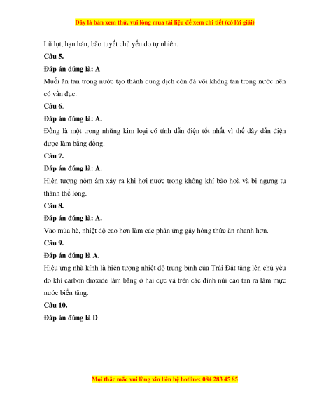 Câu 7. Thời tiết nồm ẩm vào cuối mùa xuân có bản chất là hiện tượng A. ngưng tụ hơi nước.