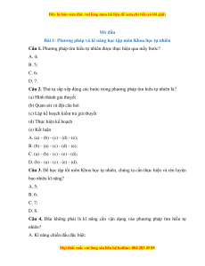 Câu 1. Phương pháp tìm hiểu tự nhiên được thực hiện qua mấy bước? A. 4; B. 5; C. 6; D. 7.