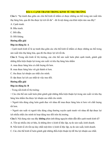 Câu 1. “Sự tranh đua giữa các chủ thể kinh tế nhằm có được những ưu thế trong sản xuất tiêu