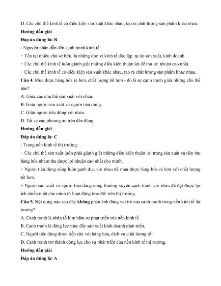 D. Cạnh tranh trở thành động lực cho sự phát triển của nền kinh tế thị trường. Hướng dẫn giải Đáp án đúng là: A