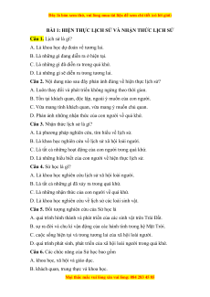 BÀI 1: HIỆN THỰC LỊCH SỬ VÀ NHẬN THỨC LỊCH SỬ