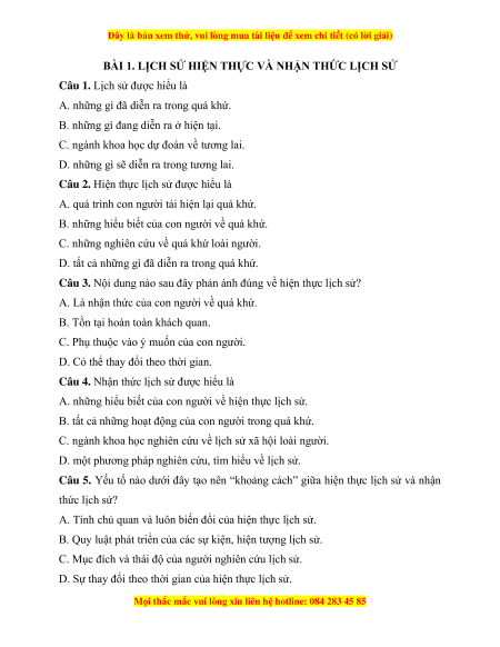 BÀI 1. LỊCH SỬ HIỆN THỰC VÀ NHẬN THỨC LỊCH SỬ