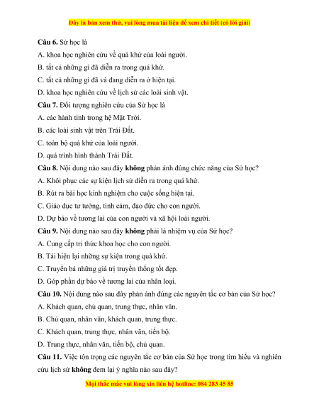 Câu 10. Nội dung nào sau đây phản ánh đúng các nguyên tắc cơ bản của Sử học?