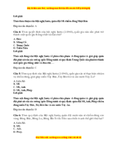 Câu 1: Hội nghị Ianta (1945) có sự tham gia của các nước nào? A. Anh - Pháp - Mĩ. B. Anh - Mĩ - Liên Xô. C. Anh - Pháp - Đức.