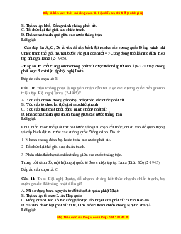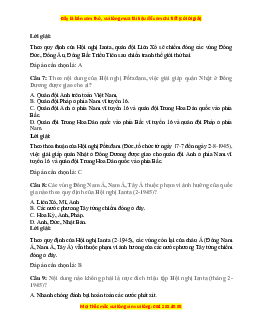 Câu 7: Theo nội dung của Hội nghị Pốtxđam, việc giải giáp quân Nhật ở Đông