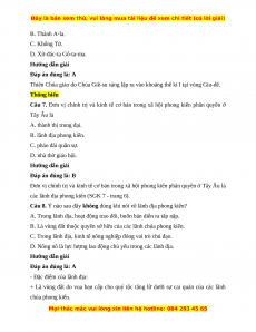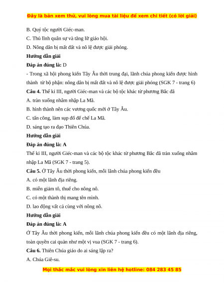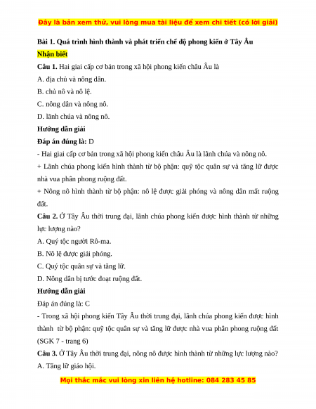 Câu 3. Ở Tây Âu thời trung đại, nông nô được hình thành từ những lực lượng nào? A. Tăng lữ giáo hội.