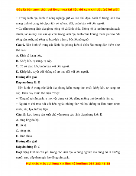 Câu 9. Nền kinh tế trong các lãnh địa phong kiến ở châu Âu mang đặc điểm như thế nào? A. Kinh tế hàng hóa.