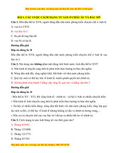 Câu 1. Đến đầu thế kỉ XVII, người đứng đầu nhà nước phong kiến chuyên chế ở Anh là A. vua Lu-I XVI. B. vua Sác-lơ I.