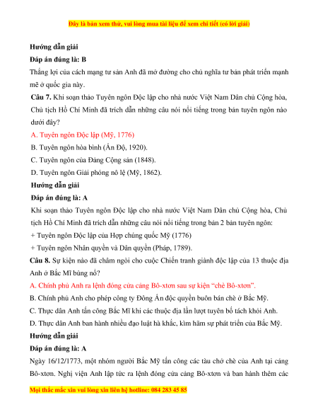 Câu 7. Khi soạn thảo Tuyên ngôn Độc lập cho nhà nước Việt Nam Dân chủ Cộng hòa,