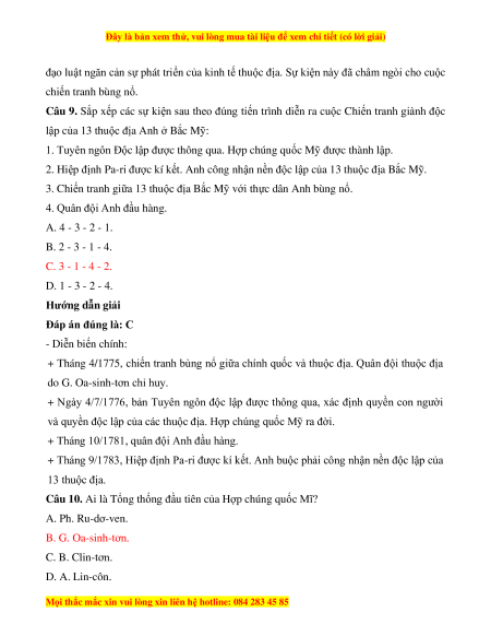 Câu 10. Ai là Tổng thống đầu tiên của Hợp chúng quốc Mĩ? A. Ph. Ru-dơ-ven. B. G. Oa-sinh-tơn. C. B. Clin-tơn. D. A. Lin-côn.