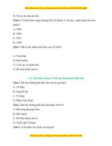 Câu 6. Tô Hoài được tặng thưởng Hồ Chí Minh về văn học, nghệ thuật năm bao nhiêu? A. 1995 B. 1996 C. 1997 D. 1998
