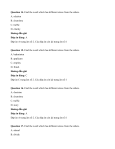 Question 13. Find the word which has different stress from the others. A. newspaper B. expression C. adoption D. attendance Hướng dẫn giải Đáp án đúng: A