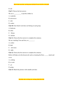 Câu 10. Find which word does not belong in each group. A. bedroom B. toilet C. library D. kitchen