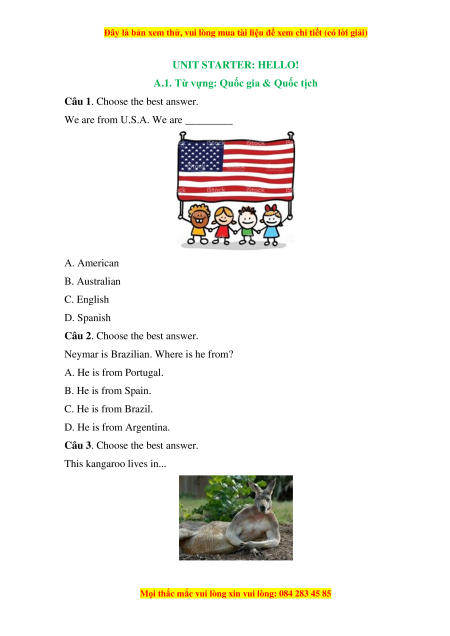 Câu 3. Choose the best answer. This kangaroo lives in...