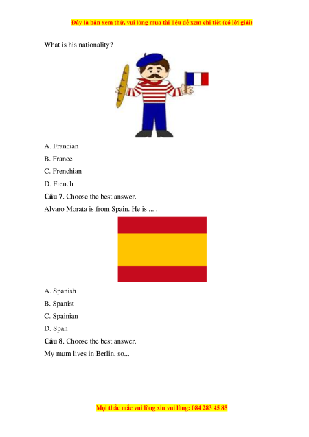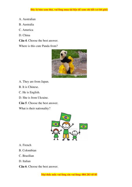 Câu 5. Choose the best answer. What is their nationality? A. French B. Colombian C. Brazilian D. Italian