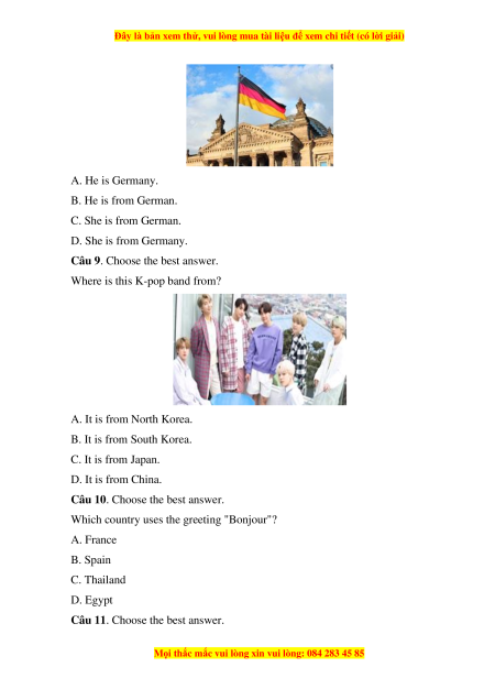 Câu 8. Choose the best answer. My mum lives in Berlin, so...