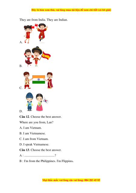 B: Tôi đến từ Philippines. Tôi là Flippino.